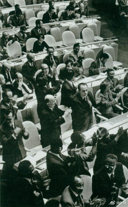 10月25日 第二十六屆聯(lián)合國大會以壓倒性多數(shù)的票數(shù)通過2758號決議,恢復中華人民共和國在聯(lián)合國的一切合法權利,并立即把蔣介石集團的“代表”從聯(lián)合國及其所屬一切機構中驅逐出去。11月15日,中華人民共和國代表團首次出席聯(lián)合國大會。