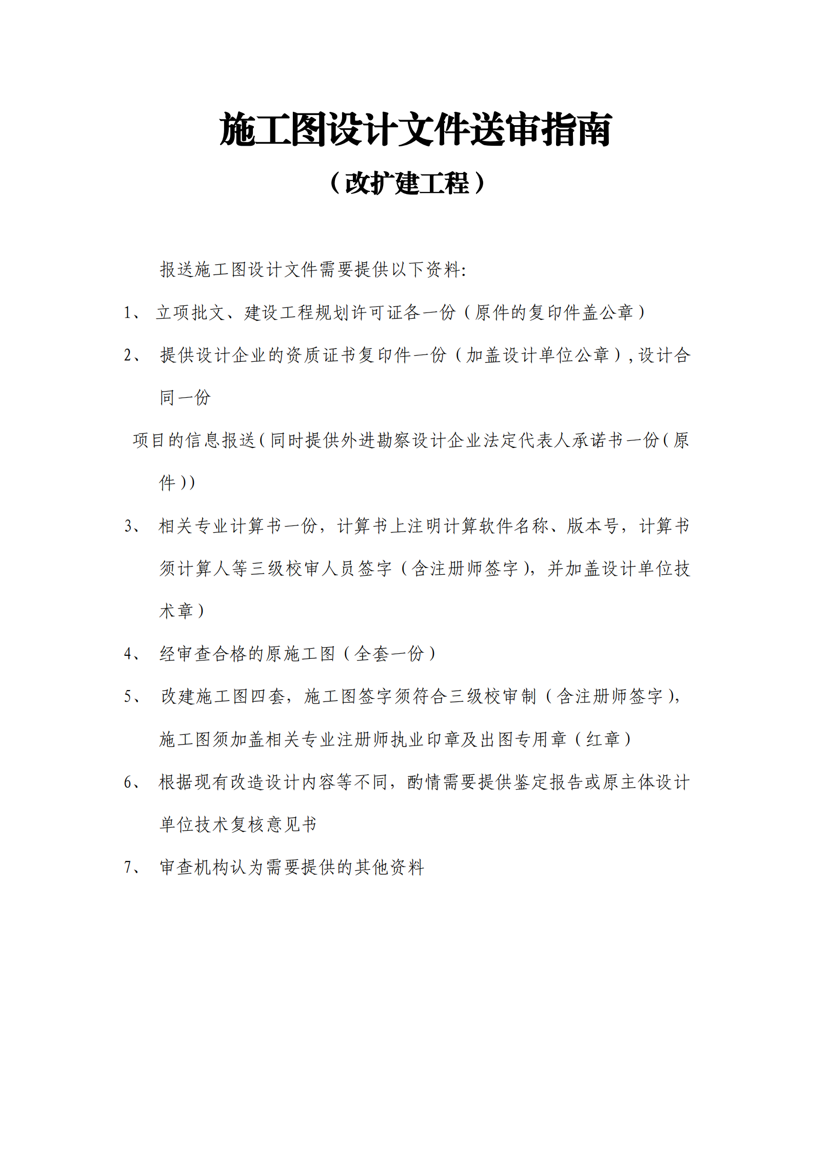 備注:1、以上所需資料齊全后方能辦理施工圖審查,缺少資料者不予受理。
